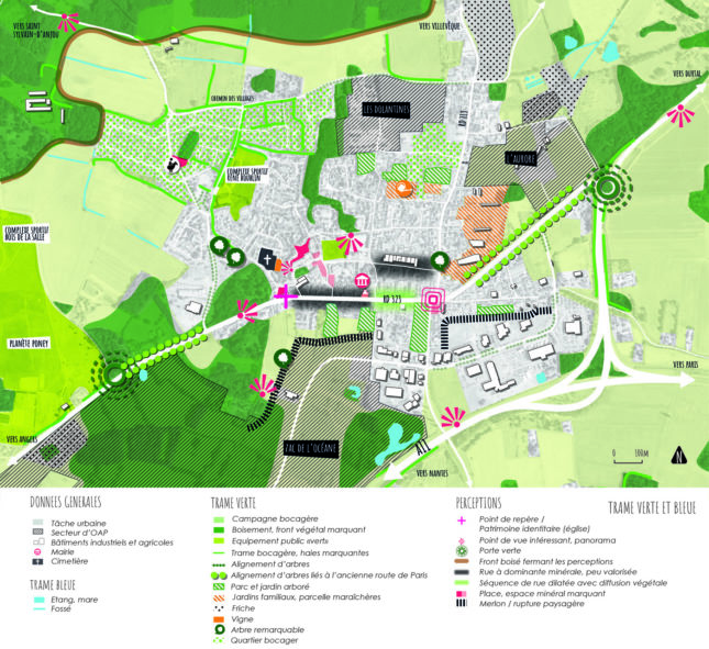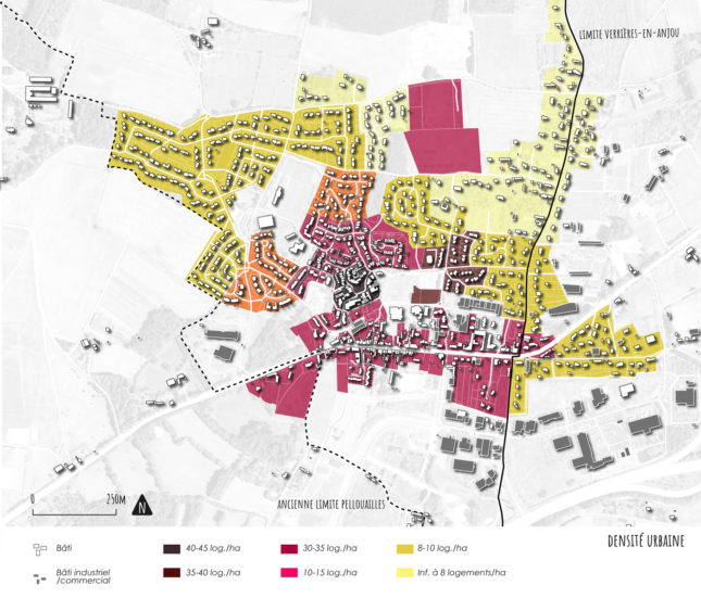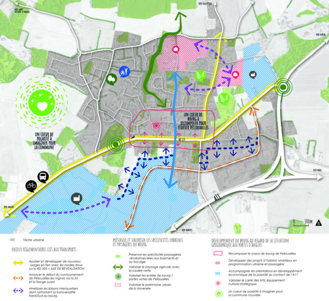 Espace ouvert majeur en plein centre urbain, le site de la ZAC du centre-ville de Pellouailles-les-Vignes bénéficie déjà d’une occupation importante puisqu’il accueille sur l’essentiel de sa surface des espaces verts à vocation loisirs (terrain de foot…) et un réseau viaire conséquent. Situé en milieu urbain, il présente de nombreuses franges avec l’existant qui se caractérisent par une diversité de typologies importante. Au coeur même de la vie du bourg; ce projet de renouvellement urbain s’appuie sur une démarche très participative pour trouver une conciliation entre densité et besoins en usages alternatifs formulés par les riverains : espaces verts, espaces de stationnement, accessibilité, services.