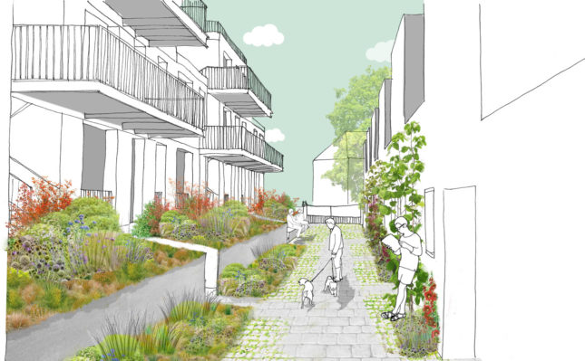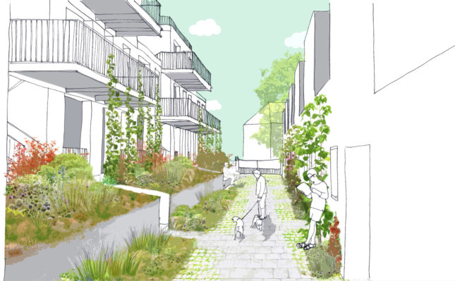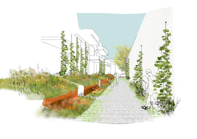 – De porches végétaux et mineraux entre les bâtiments (venelle intimiste).