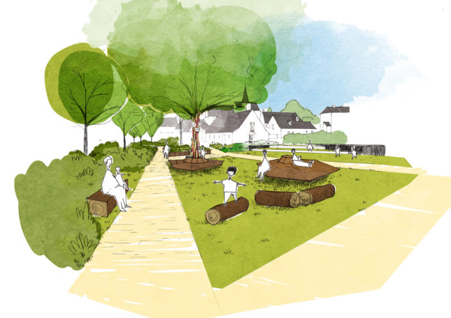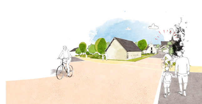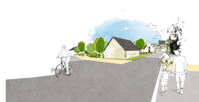 Un des principaux objectif du projet est également de végétaliser la rue pour esquisser les ambiances du coeur vert jusqu’à la RD 770 et éviter la prise de vitesse (sécurisation).