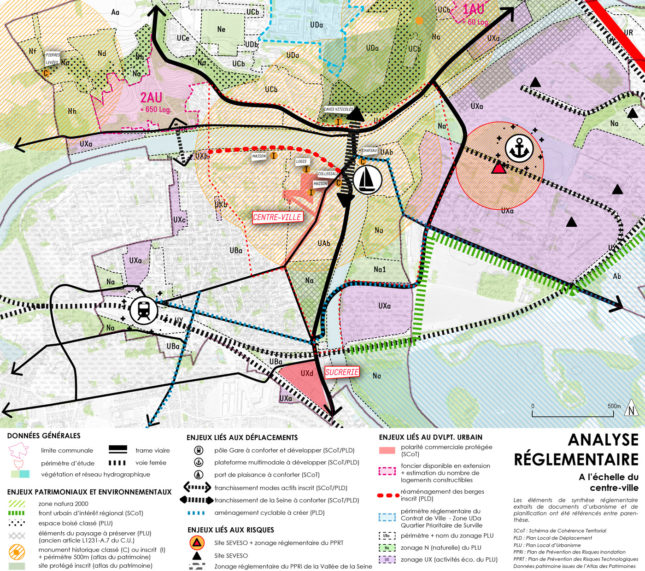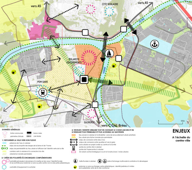 L’étude portée sur le centre-ville s’est attachée à montrer les forces et les faiblesses du territoire tout en ébauchant l’amorce d’un projet de territoire hiérarchisé autour de 3 principaux enjeux :
